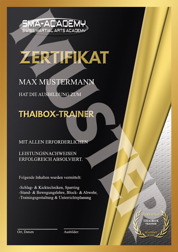 Nach bestandener Theorie- & Praxis-Prüfung erhältst du dein Zertifikat als THAIBOX TRAINER.