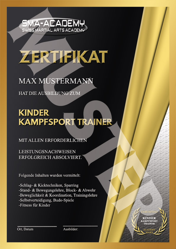 Nach bestandener Theorie- & Praxis-Prüfung erhältst du dein Zertifikat als KINDER KAMPFSPORT TRAINER.
