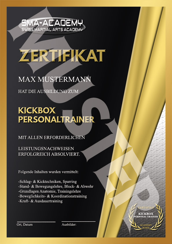 Nach bestandener Theorie- & Praxis-Prüfung erhältst du dein Zertifikat als KICKBOX TRAINER.